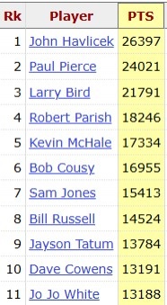杰伦-布朗达成里程碑,他NBA生涯总得分突破13000分,为队史第12位做到的球员。