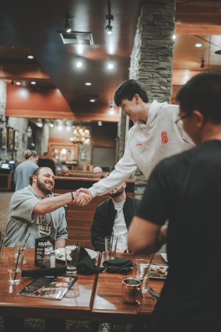 4月8日讯 今日开拓者官博晒照,杨瀚森上周末请客,混音队全队聚餐🍽️。